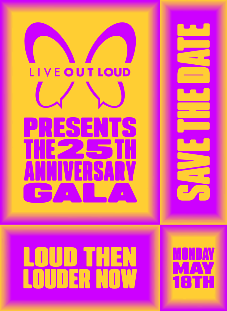 The Live Out Loud Gala—our signature annual celebration—unites 400+ donors, corporate partners, cultural allies, advocates, and youth scholarship winners for an unforgettable evening of storytelling, visibility, and impact as we mark 25 years of empowering LGBTQAI+ young people.